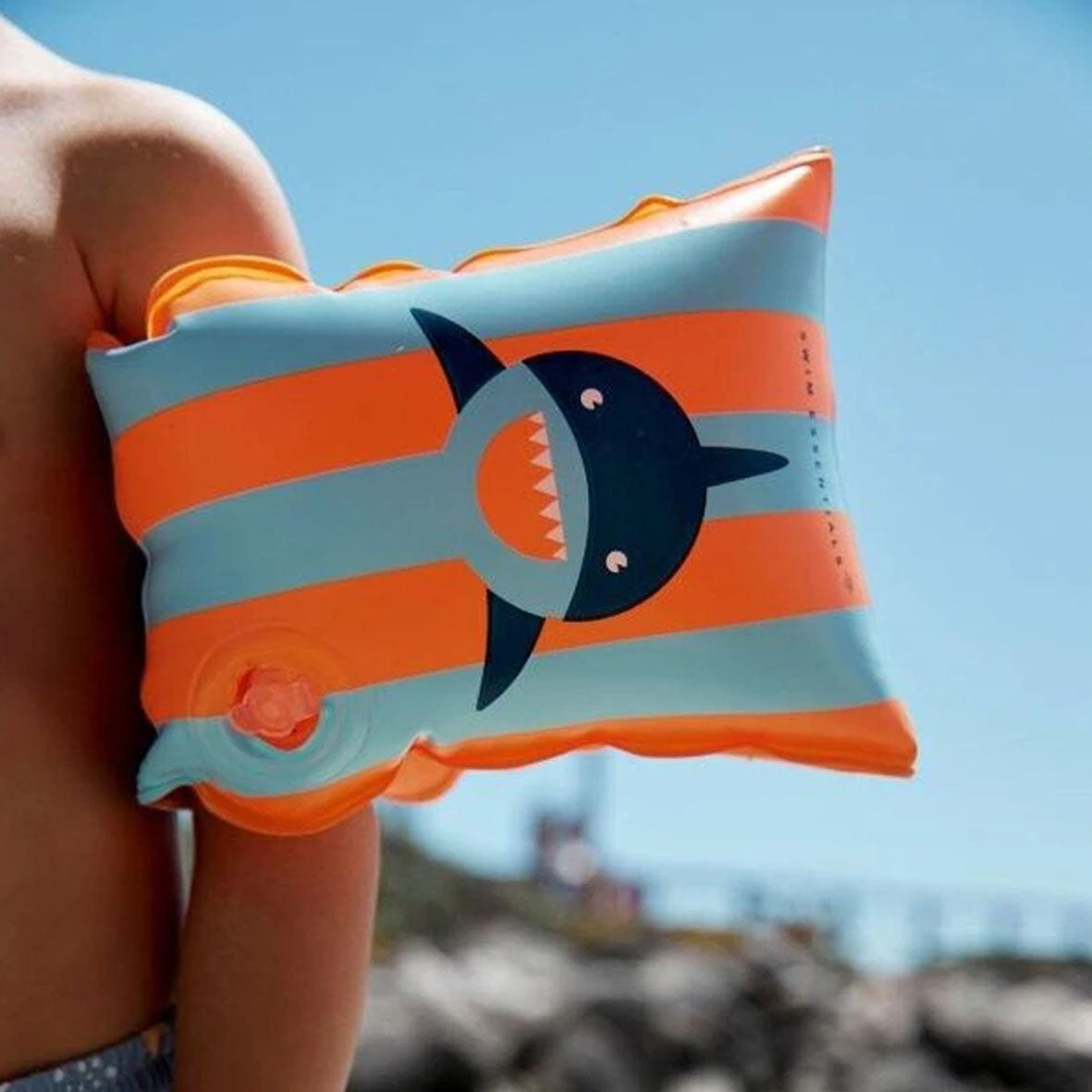 Discover the cheerful Tropic Shark Swim Arm Band Floaties by Swim Essentials!