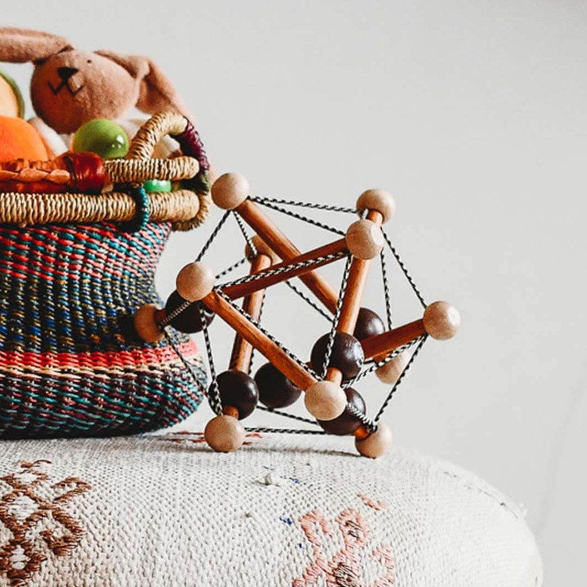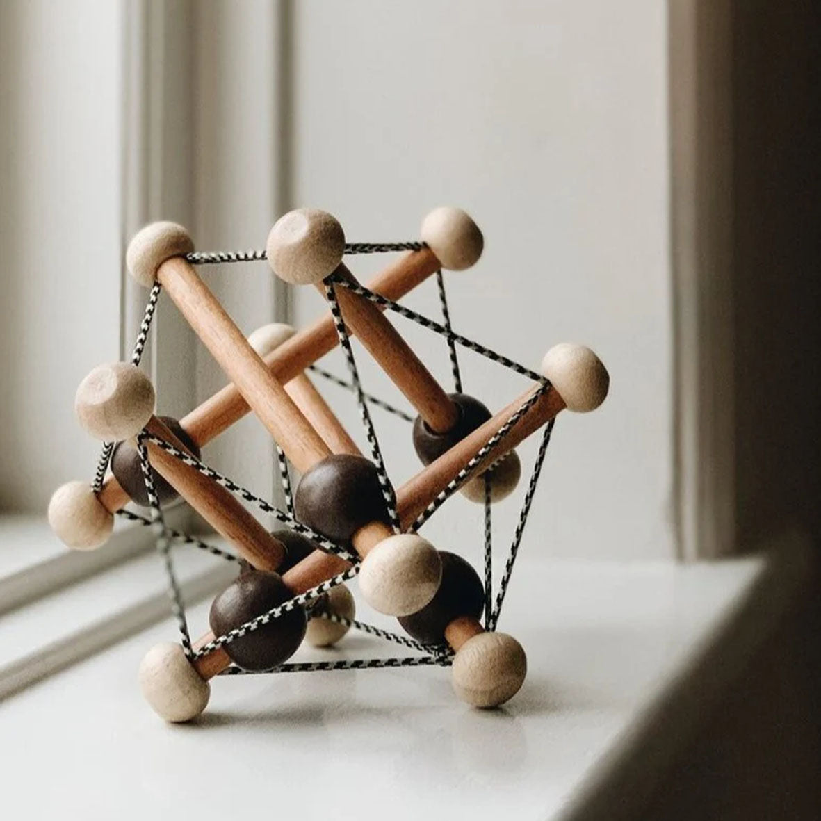 The Artful Skwish from Manhattan Toy Co has a gorgeous wood tone while featuring springy, rebounding elastic strung between sustainable wood teether rods.