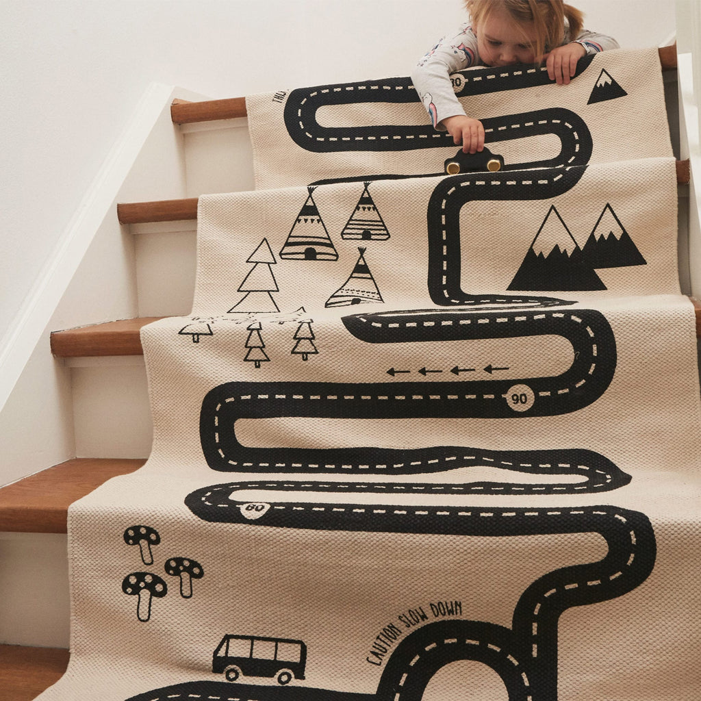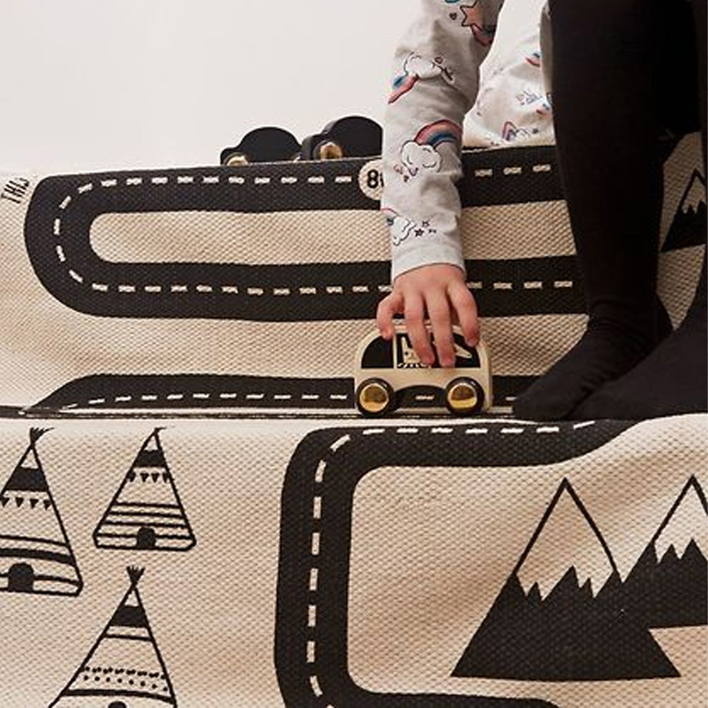 This cool, soft Adventure Rug by OYOY is made from 100% durable woven cotton, and features a road map which is great to use a variety of toy cars.