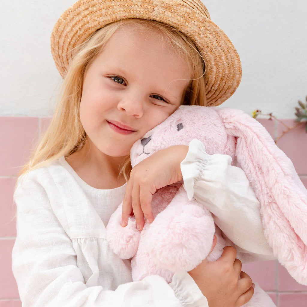 Betsy Bunny is a delightful light pink soft toy, ready for magical adventures from OB Designs.