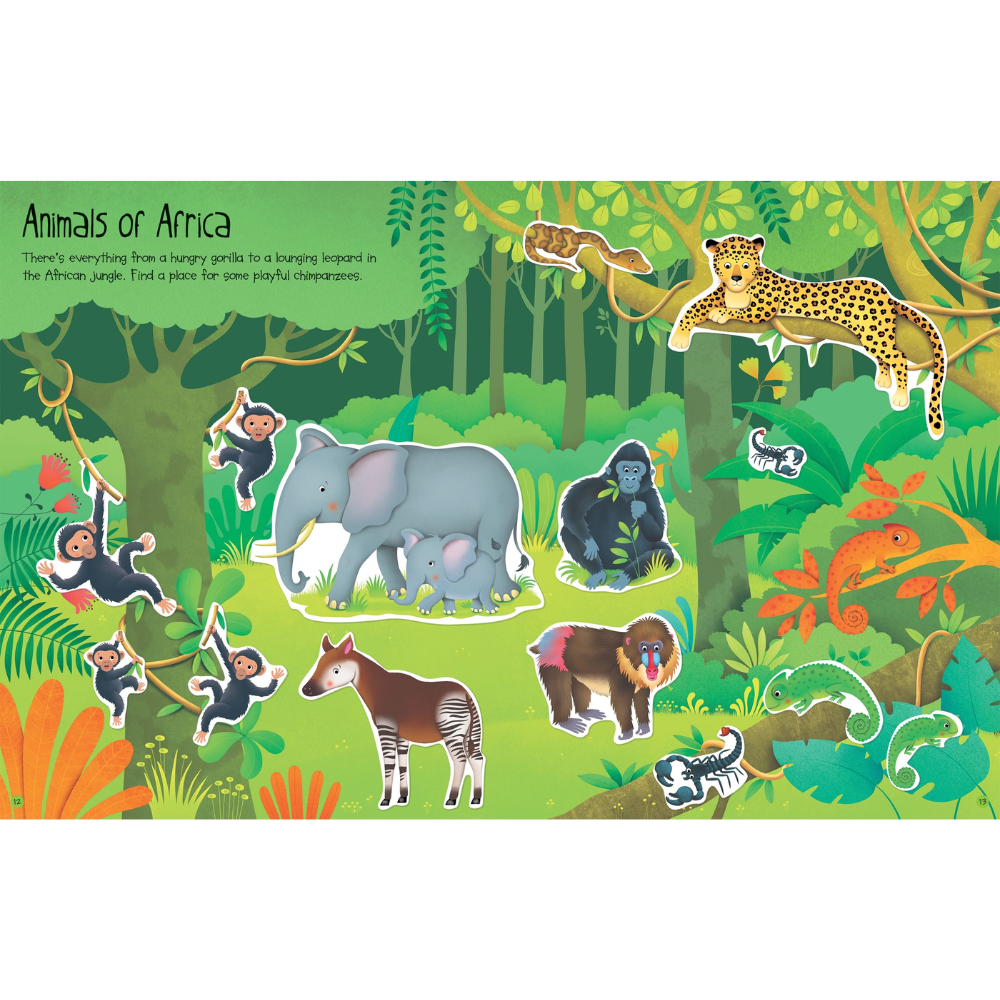 Young children can use the stickers to complete scenes of the Amazon River, the African jungle and a hot and steamy swamp. With over 170 stickers of gorillas, elephants, leopards, lemurs and lots more! A great way for children to learn about new animals and build their vocabulary.