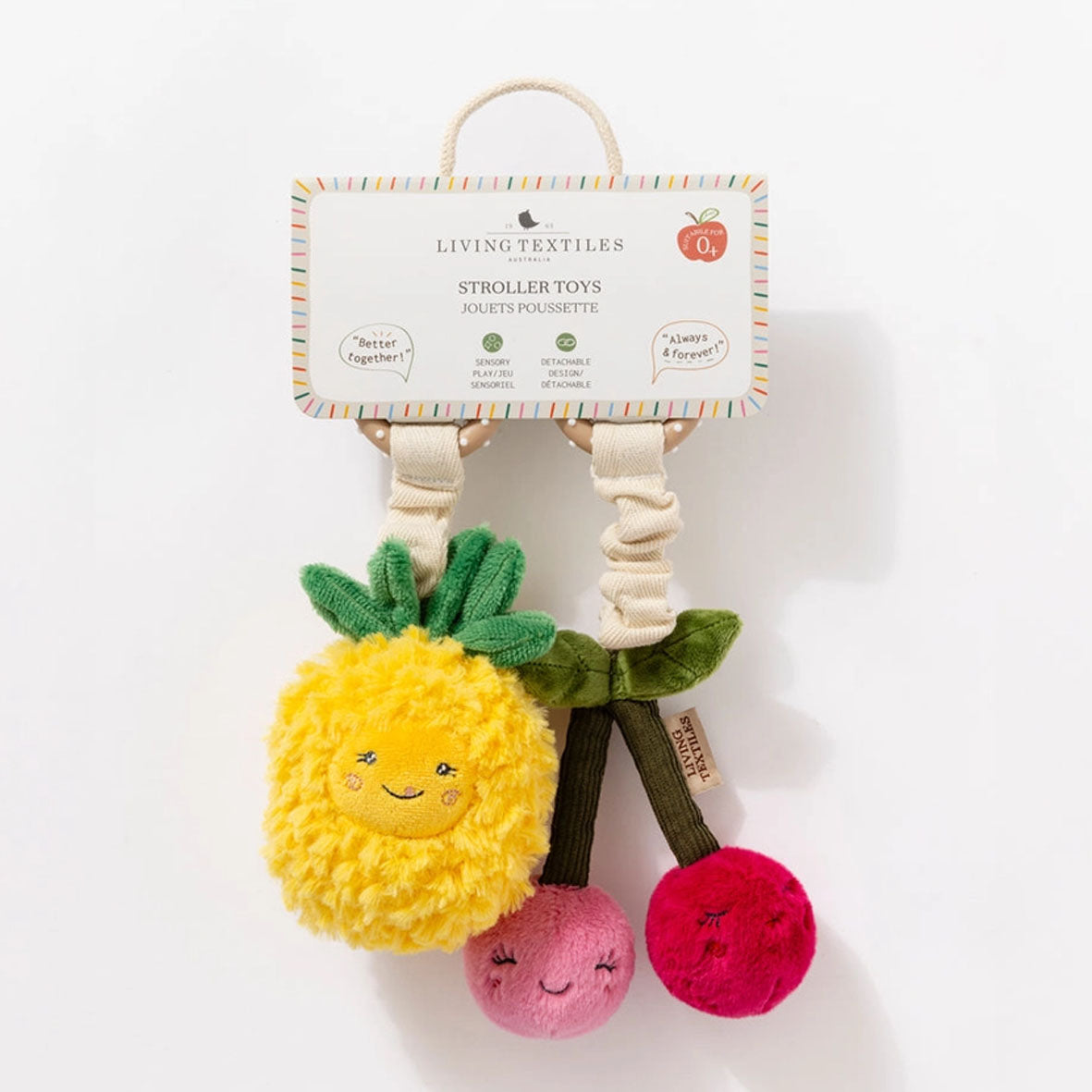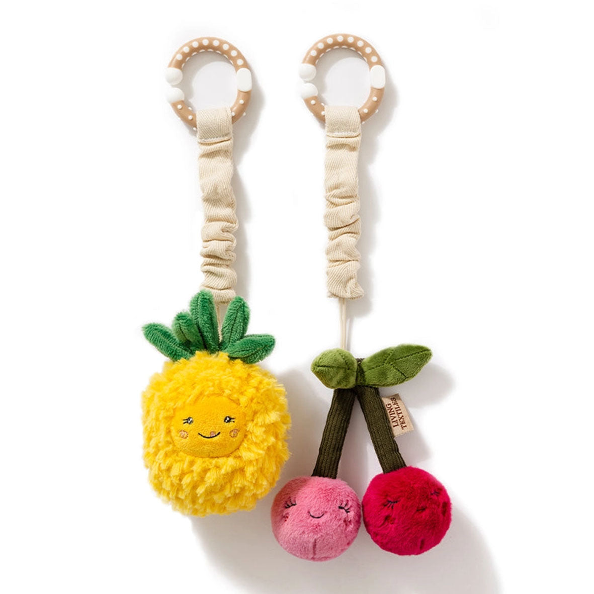 Pineapple and Cherries | 2 Pack Stroller Toy | Living Textiles
