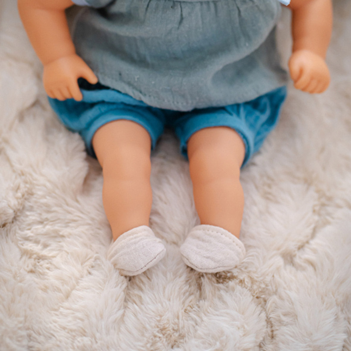 Finish off your Djeco Pomea doll's outfit with this set of adorable baby shoes.