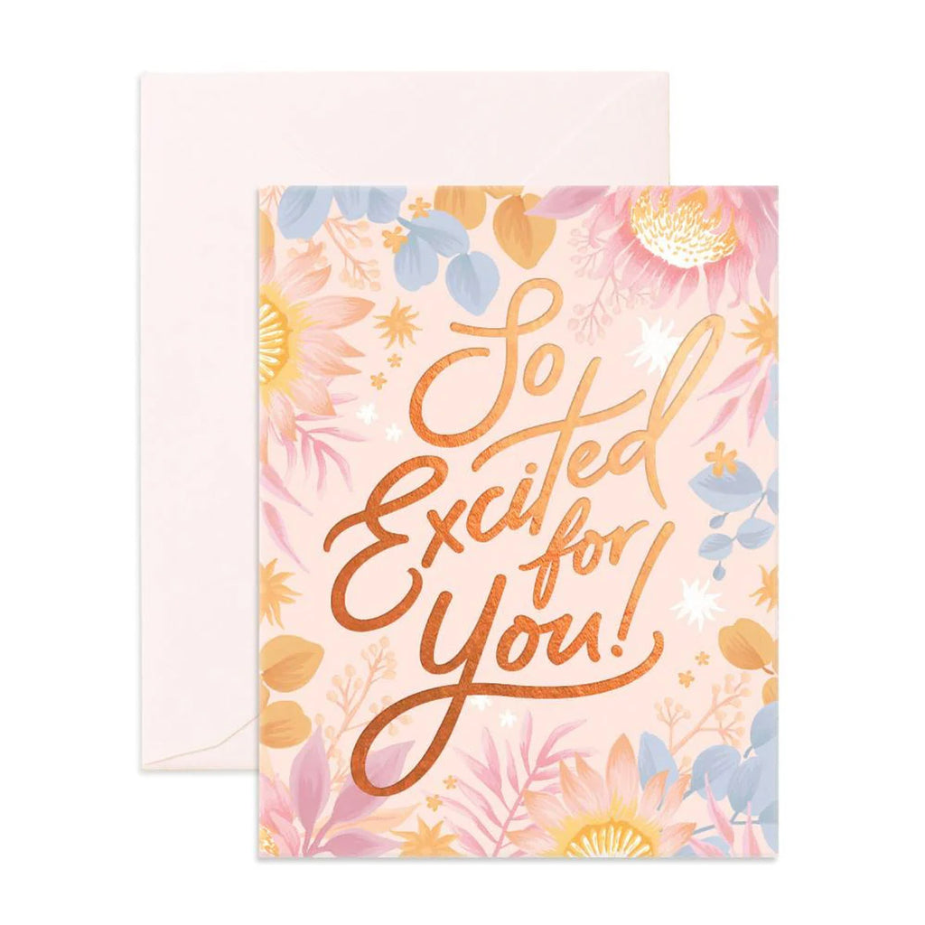 A stunning foil greeting card in pretty pastel florals, perfect for welcoming new babies into the world by Fox & Fallow.
