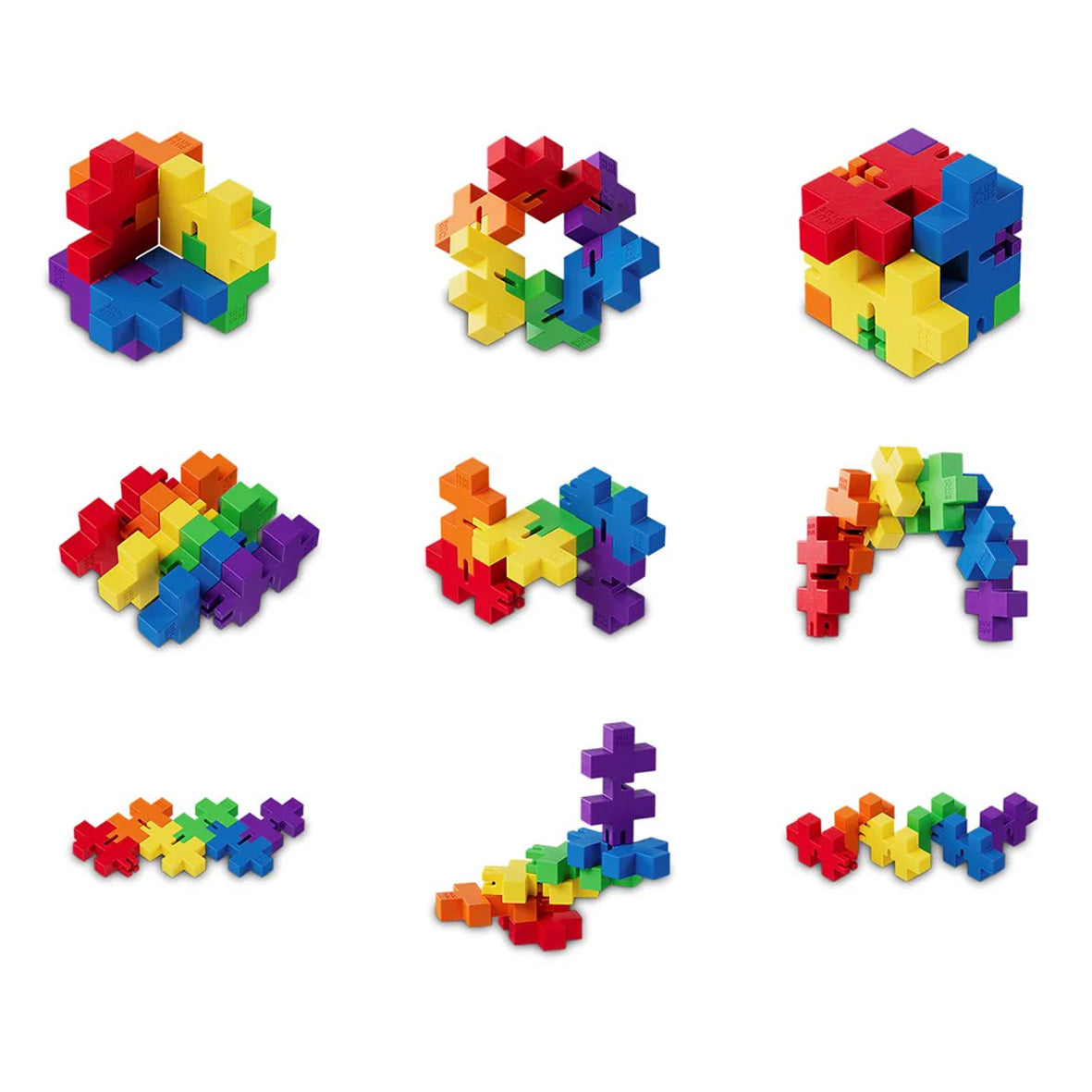 HEXEL is an engaging and vibrant fidget toy that consists of six interconnected Plus-Plus pieces linked together by a flexible cord.