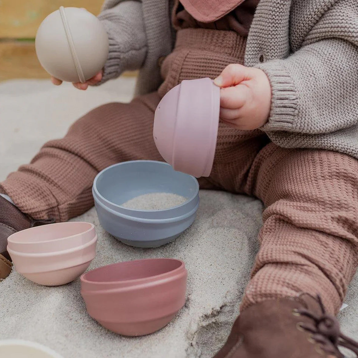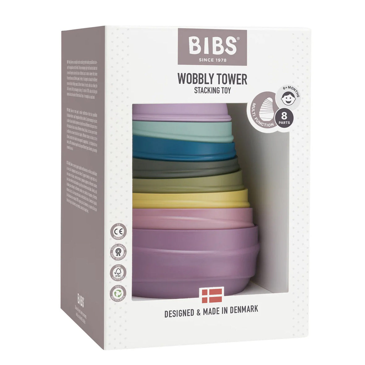 The BIBS Wobbly Tower is designed with endless possibilities of play – only the imagination sets the limits. The toy encourages stacking and play in both sand and water. It comes with imprints and small holes of different sizes to create a shower effect where the water flows out at different speeds.